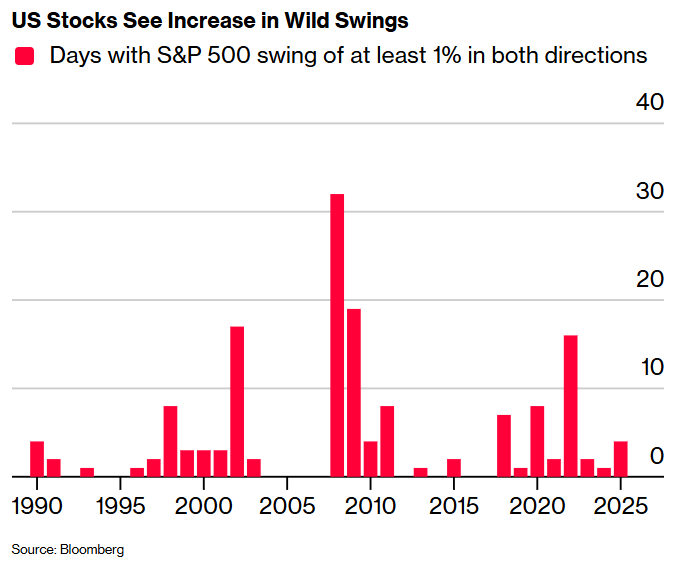 标普500指数双向波动至少1%的天数