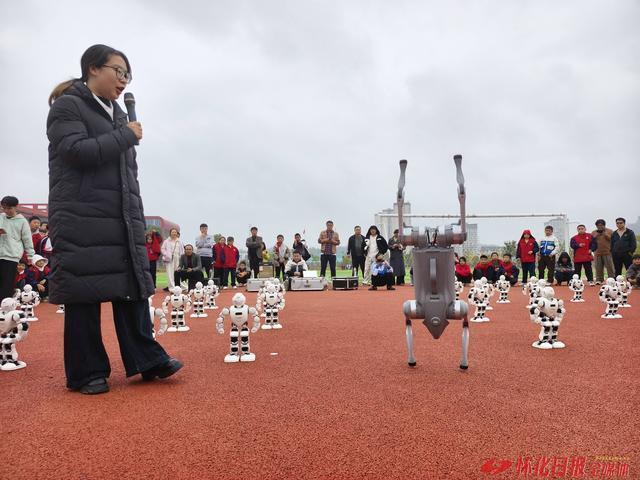 另一边,市科技馆工作人员滕诗贻化身主持人,带领两只智能机器狗登场互动。机器狗拟人化表演惟妙惟肖,孩子们纷纷围上前,近距离感受人工智能的独特魅力。当天,由宇树机器人组成的团体表演也是让人难以忘怀。此外,志愿者在表演中还穿插了科普课,在玩中学、学中悟,拓宽了科技视野。