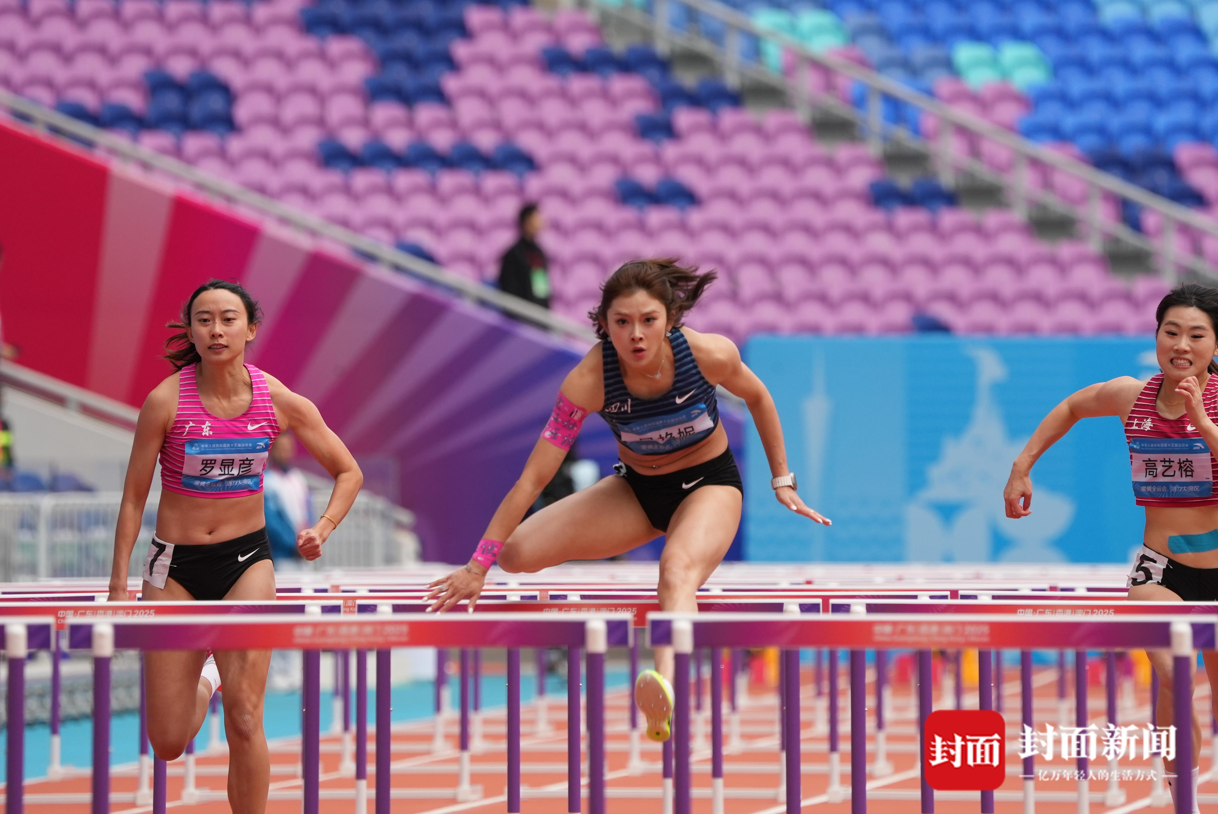 吴艳妮的主要对手、卫冕冠军林雨薇预赛成绩为13秒12,同组的夏思凝跑出13秒24的个人赛季最佳同样晋级决赛。和吴艳妮同组竞技的四川队队友魏宇慧以13秒28刷新PB获得小组第二,同样跻身决赛。