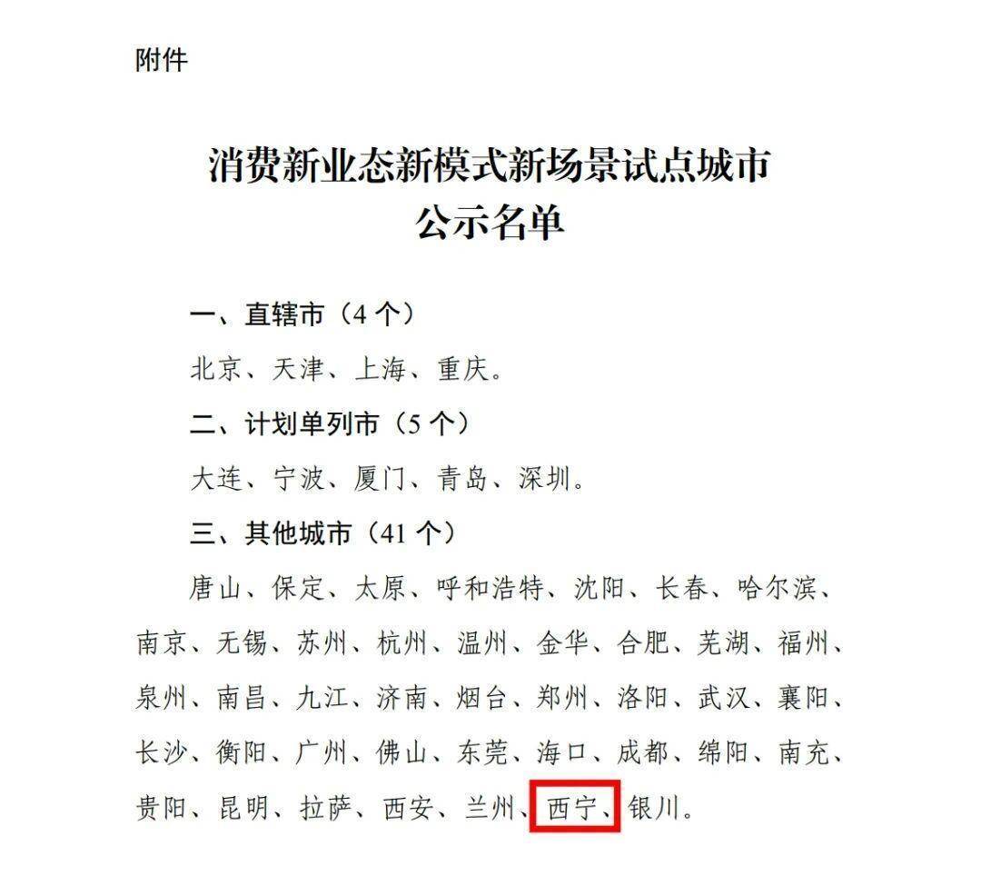 11月20日,财政部、商务部对消费新业态新模式新场景试点城市竞争性评审结果进行公示,北京、天津、上海、重庆、 西宁 等50城入选。公示时间为11月20日至28日。